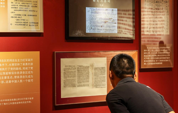 8月27日,觀眾在參觀“華中長城 鐵軍忠魂——長三角地區新四軍檔案史料展”。 新華社記者李博 攝