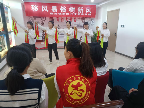 文藝宣講潤民心,移風易俗入腦入心。臨海鎮充分發揮新時代文明實踐所(站)的陣地作用,組織文藝志愿者、道德模范、返鄉大學生等群體,通過快板、小品、歌曲、朗誦等群眾喜聞樂見的形式,開展“移風易俗”主題文藝宣講活動。在該鎮鹽店村開展的“推動殯葬移風易俗、樹立文明新風”活動中,“中國好人”張同祥帶頭倡議,文明家庭代表吳才秀宣讀倡議書,青年代表彭揚程分享婚戀觀,多種聲音匯聚成文明新風的強音。用方言講述身邊事,用真情打動人心,讓群眾在歡聲笑語中接受教育、轉變觀念。