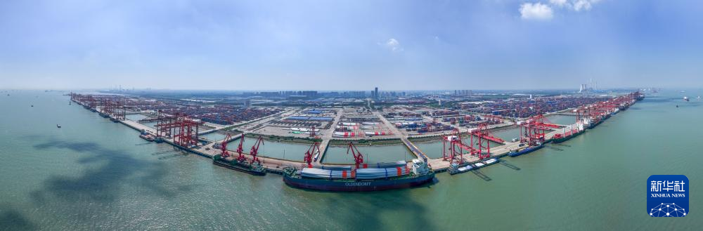 這是9月16日拍攝的江蘇太倉港碼頭(無人機拼接照片)。