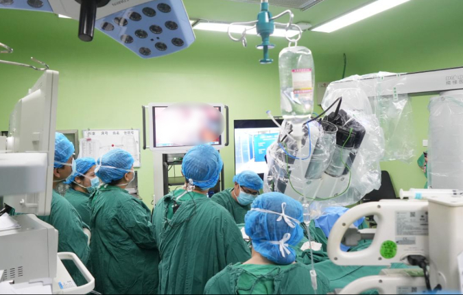 因患者以前做過手術,盆腔內有粘連,且子宮大、血供豐富,手術具有一定難度和挑戰,兩地團隊在術前反復對接,細致打磨手術流程和方案。江蘇省人民醫院多部門在術前密切協作,提前測試手術信號、布置調試手術機器人,為手術的成功開展打下堅實基礎。