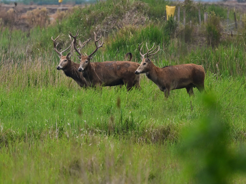 6月7日在江蘇鹽城東臺條子泥濕地拍攝的麋鹿(張龍 攝)