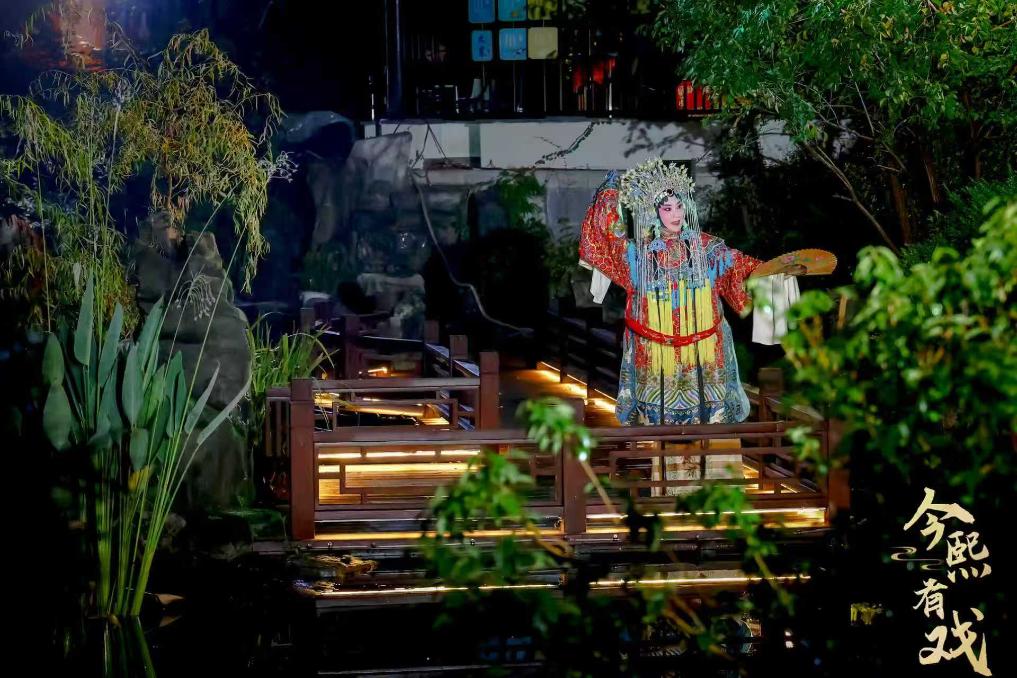沉浸式夜游《今熙有戲》由南京市演藝集團、甘家大院和熙南里街區聯合策劃打造,南京市京劇團演出。從回廊小亭到假山曲橋,從津逮藏書樓再到茶館戲臺,延續百年歷史的甘家大院處處是舞臺、幕幕皆美景。演出以“南家班”納新尋角的劇情主線帶領游客一秒入戲,跟著武生耍一回槍花,伴著“游園”學一段水袖,在月色中聽一折《貴妃醉酒》,再裝扮登臺當一回“角兒”……“角色扮演+劇情闖關+沉浸互動”的創新模式打破了傳統觀演的邊界,讓游客從“旁觀者”轉變為“參與者”甚至“共創者”,一場游園有趣有玩有收獲,成就南京夜游打卡的又一爆款場景。
