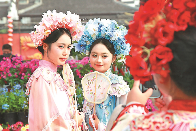南京圍繞“團圓、賞月”等節日主題,推出多項經典民俗與現代體驗融合主題活動。在玄武湖公園,游客乘畫舫夜游湖面,欣賞3D沉浸式水幕電影《尋脈玄武湖》;南京城墻上,“花神”身著漢裳以舞為媒,“古今穿越——花神巡游明城墻”活動將氛圍拉滿;中國科舉博物館里,“金榜題名時·古今游藝會”帶游客穿梭古今、熱鬧開玩;牛首山文化旅游區假日活動涵蓋戶外舞蹈、情景詩詞會、行進式互動巡游等多元形式,游客還可參與燒箔福畫、螺鈿發簪等非遺手作體驗。